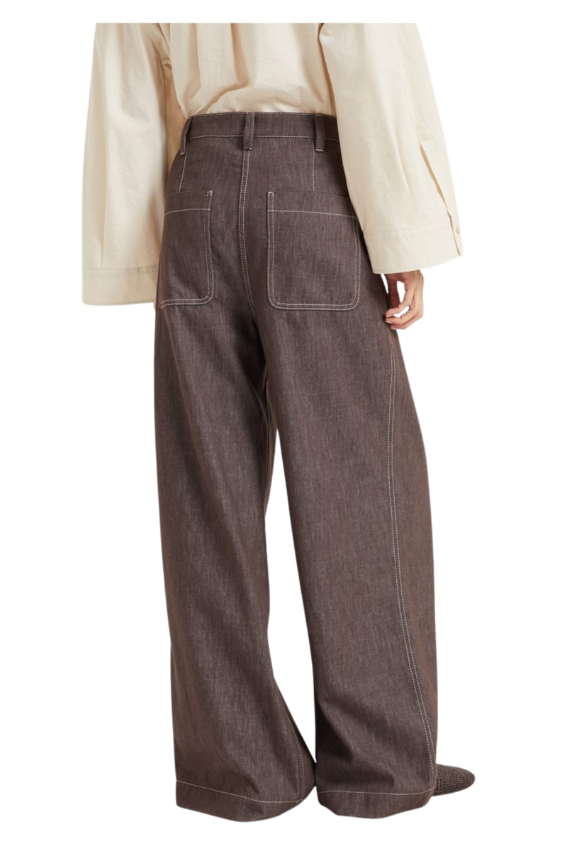 Brunello Cucinelli Women's Denim-effect Twill Smart Wide Trousers With Monili