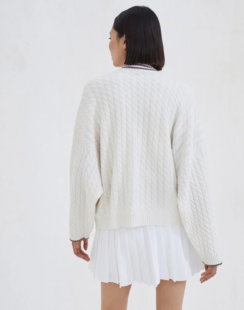 Brunello Cucinelli Women's Cashmere Cable Knit Cardigan with Logo and Metal Buttons