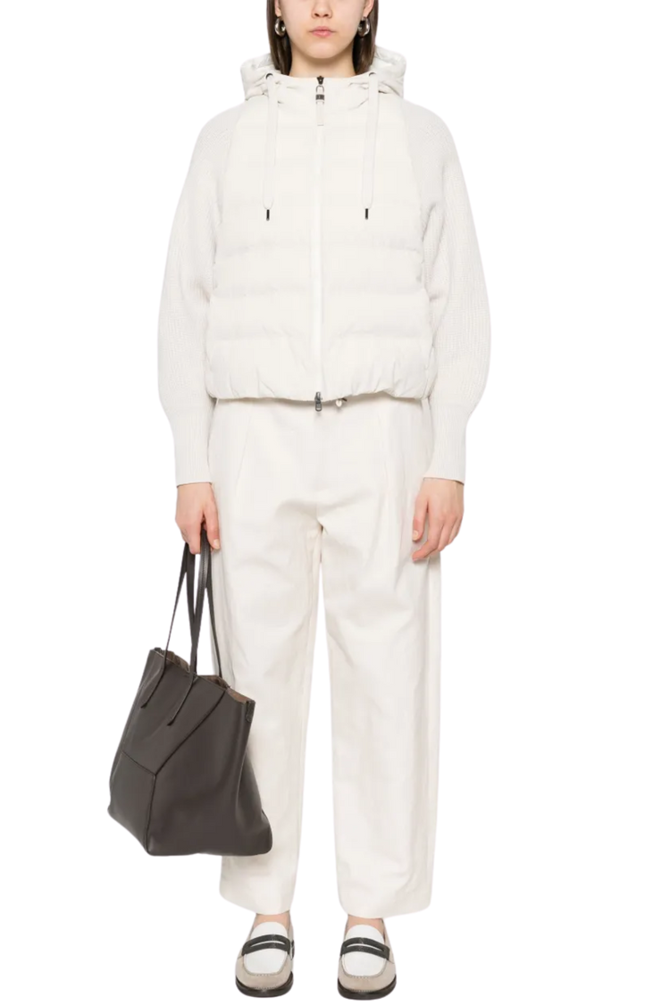 Brunello Cucinelli Women's Hooded Knitted-sleeve Puffer Jacket