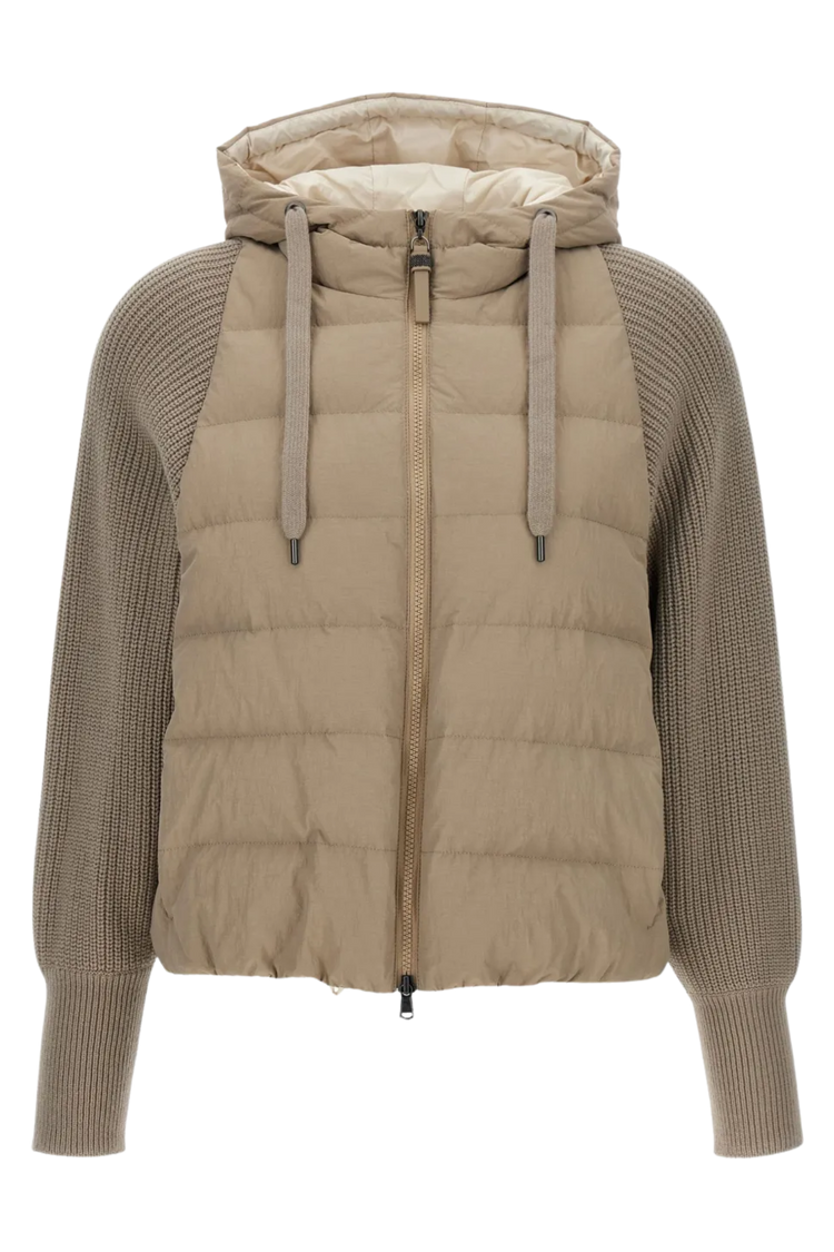 Brunello Cucinelli Women’s Hooded Knitted-Sleeve Puffer Jacket combines a quilted body with ribbed knit sleeves for warmth and refined style. Featuring an adjustable hood, front zip closure, and discreet welt pockets, it is crafted in a versatile beige hue. A perfect blend of comfort and sophistication, it embodies the brand’s signature approach to modern, luxurious outerwear.