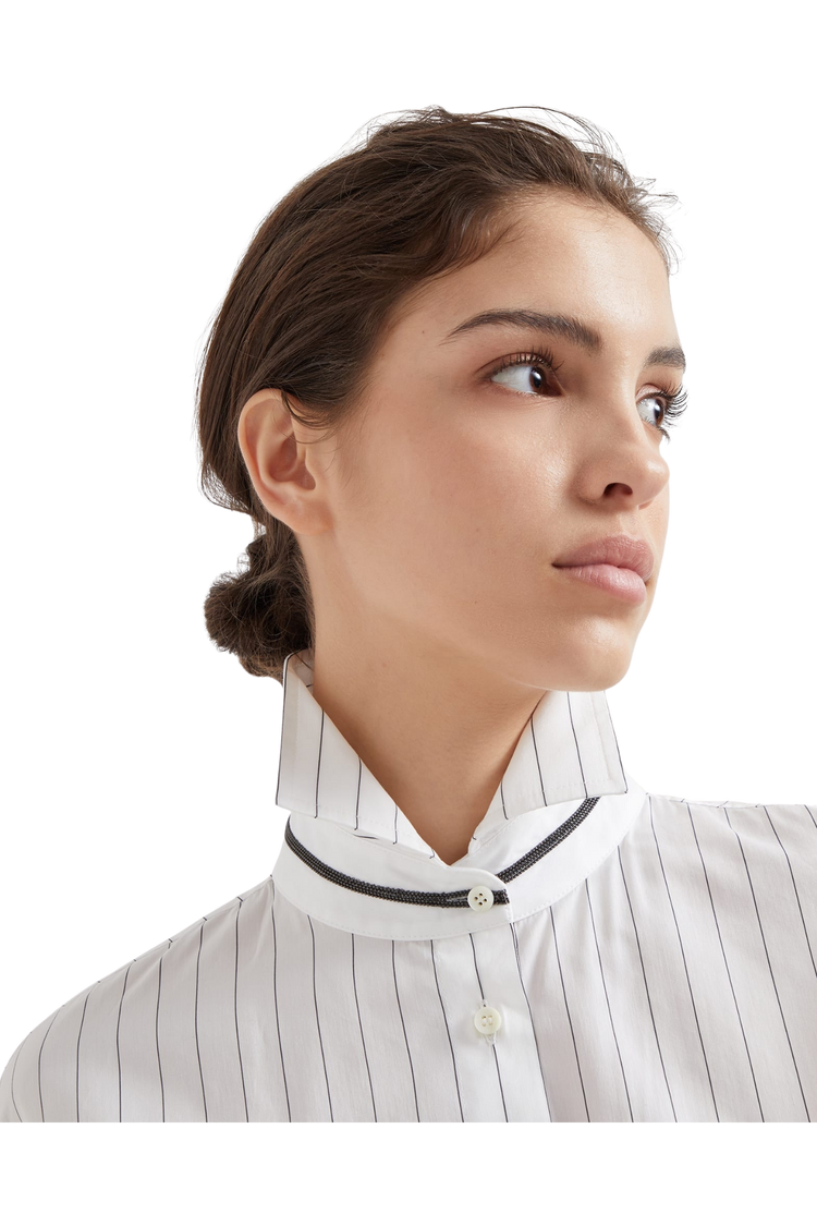 Brunello Cucinelli Women's Striped Cotton and Silk Poplin Shirt with Monili