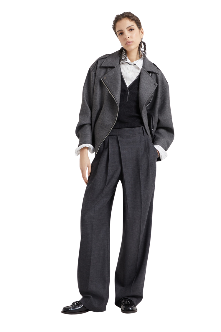 Brunello Cucinelli’s striped poplin shirt blends cotton and silk for a refined, lightweight feel. Monili embroidery at the collar adds a signature touch of radiance, while the regular-fit silhouette balances classic menswear inspiration with feminine elegance—an effortlessly versatile piece for polished, everyday style.