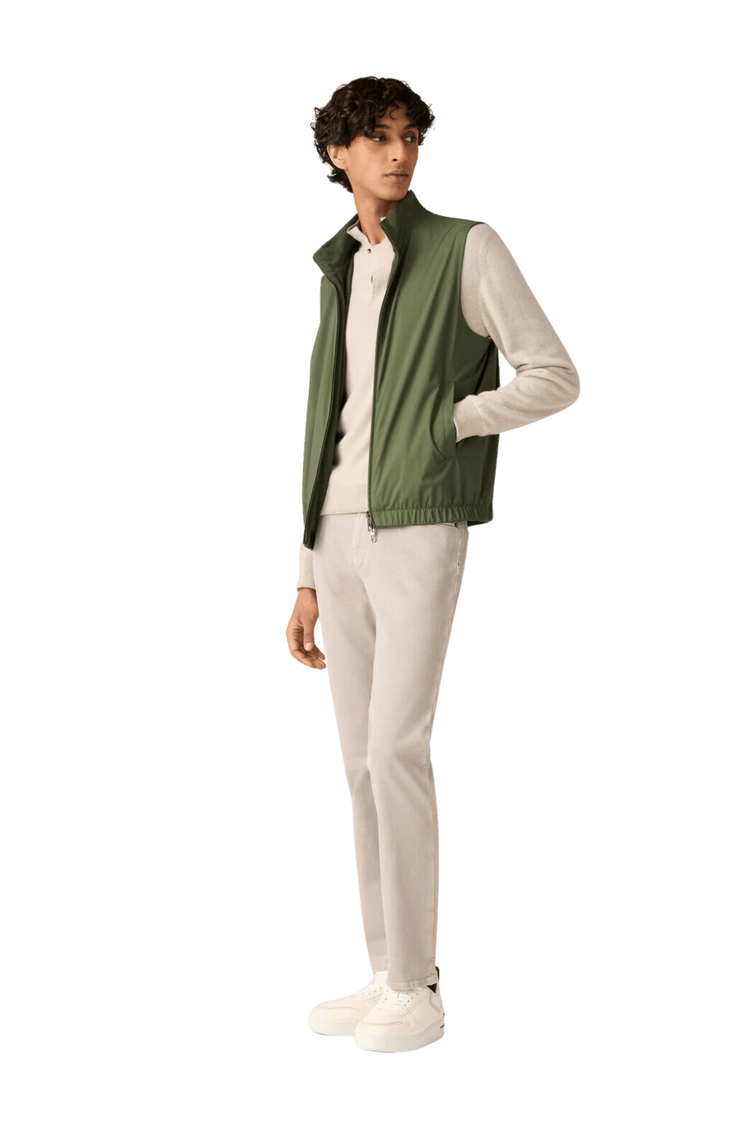 El <tc>Loro Piana</tc> El chaleco para hombre es una obra maestra de lujo discreto, confeccionado con las fibras más exclusivas del mundo y diseñado para quienes aprecian la sofisticación sin excesos. Cada detalle refleja un compromiso con la calidad atemporal y la excelencia táctil, ofreciendo una discreta sofisticación que solo los más exigentes reconocerán. Para el hombre que no tiene nada que demostrar, este chaleco no se trata de ser visto, sino de saber.