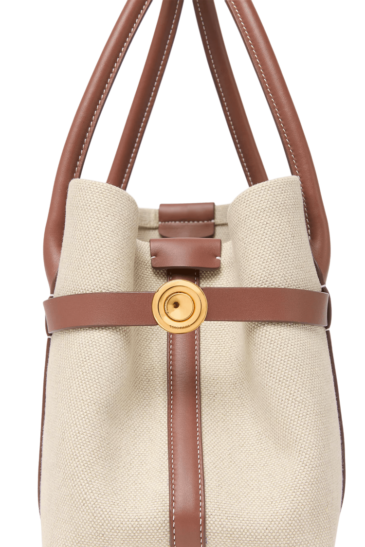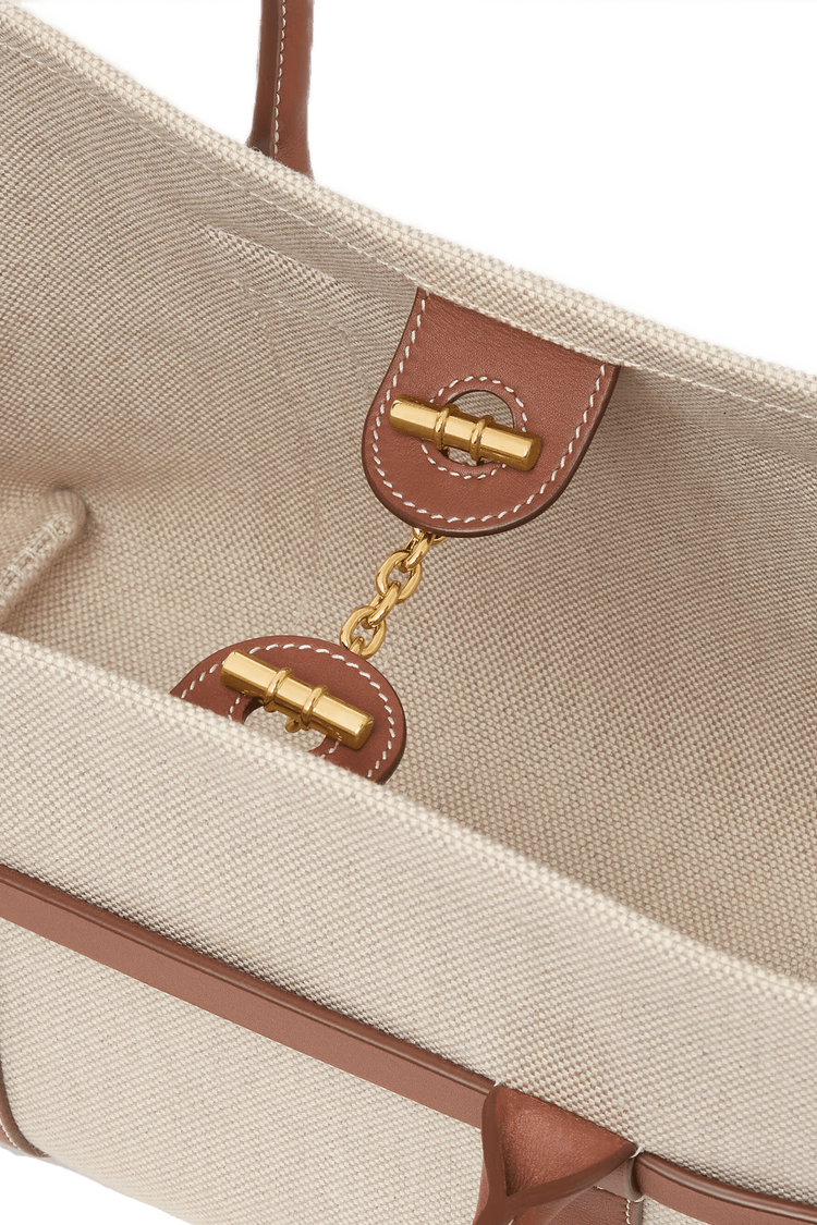 El <tc>Loro Piana</tc> El bolso shopper pequeño Ghiera para mujer combina la tradición artesanal con la versatilidad moderna. Está confeccionado en resistente algodón y lino y presenta el cierre de anilla característico de Ghiera para un estilo elegante o informal. Su diseño espacioso y estructurado se adapta con facilidad a entornos profesionales e informales, encarnando el lujo discreto a través de una artesanía atemporal y una funcionalidad refinada.