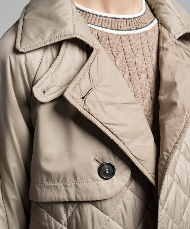 This Italian-crafted trench coat combines quilted warmth with timeless elegance. A double-breasted design, removable belt, and adjustable cuffs ensure versatility, while nylon lining adds comfort and lightness. Finished with Brunello Cucinelli’s signature monili chain detail, the coat in classic beige captures understated luxury—perfect for elevating everyday wear with refined sophistication.