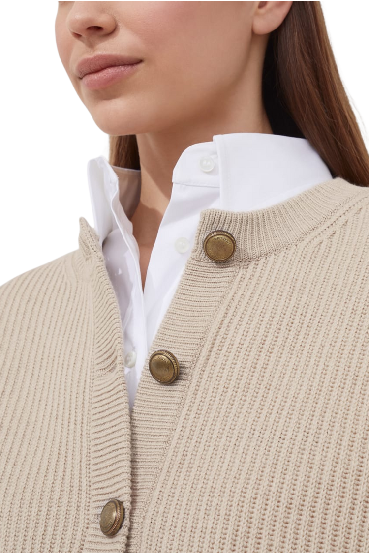 Brunello Cucinelli Women's Virgin Wool, Cashmere and Silk English Rib Cardigan with Metal Buttons