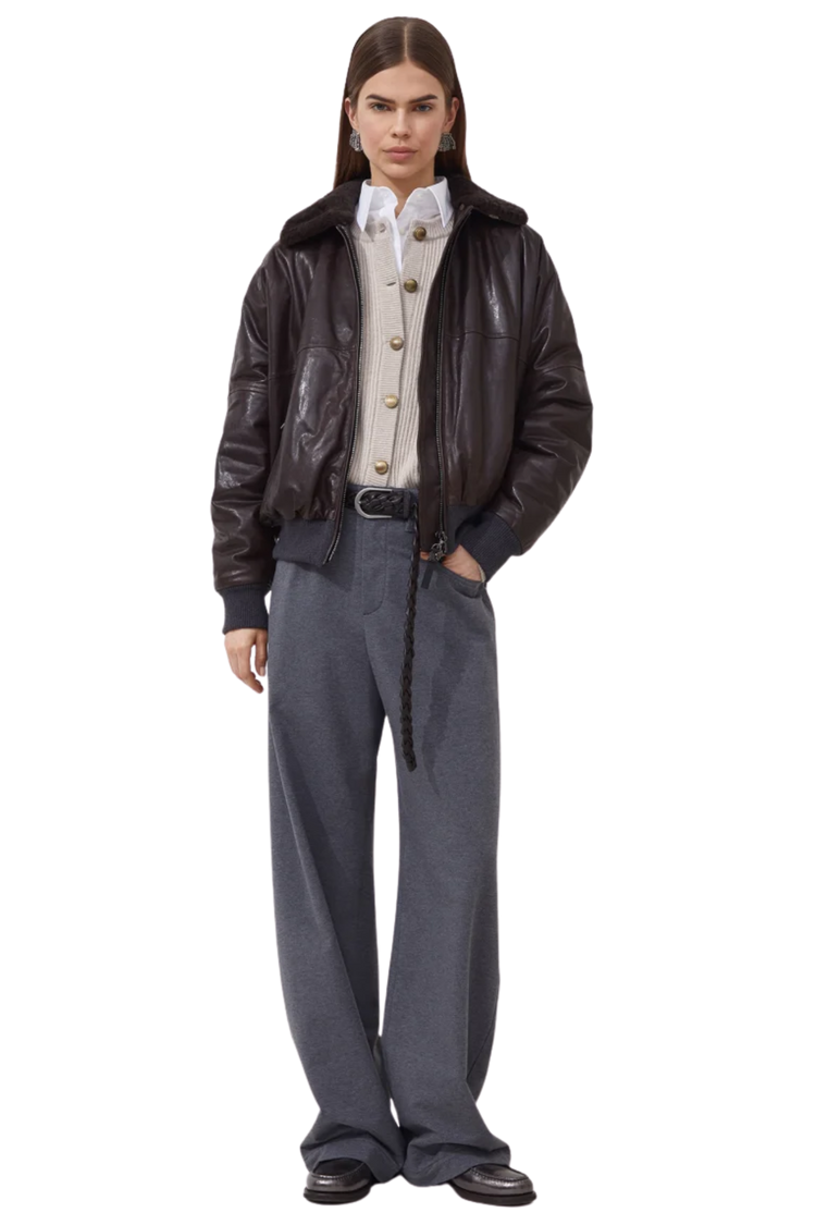 Brunello Cucinelli’s crisscross cable cardigan is crafted from virgin wool, cashmere, and silk in featherweight yarn for an exceptionally soft feel. Its English rib knit and relaxed silhouette create a cozy, textured effect, while chest pockets and metal button closures add refined finishing touches.