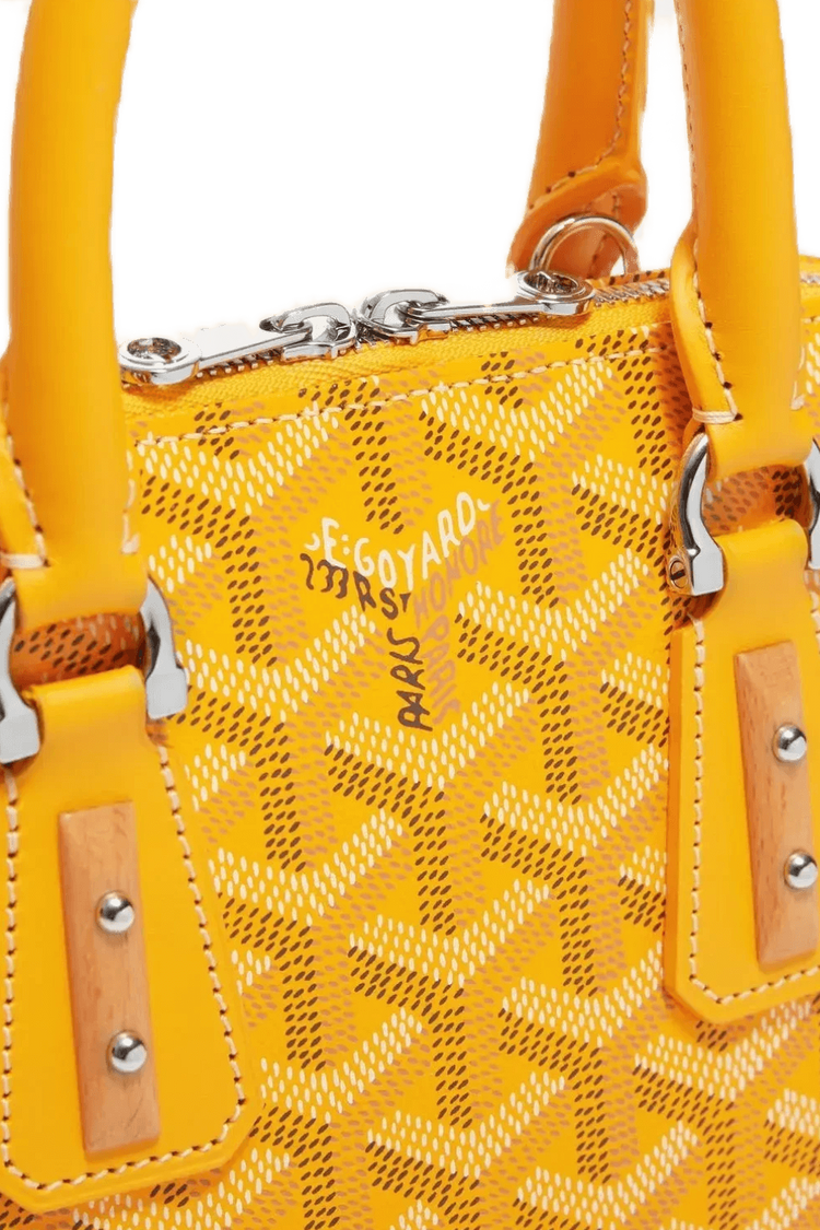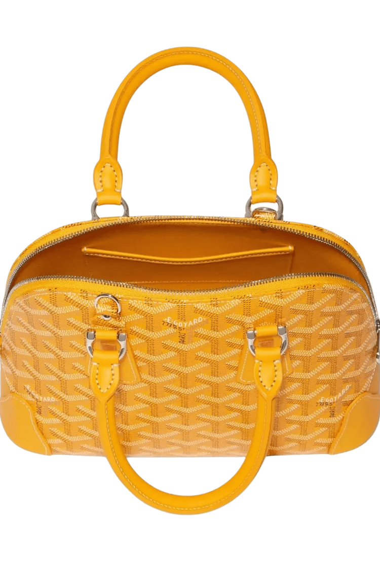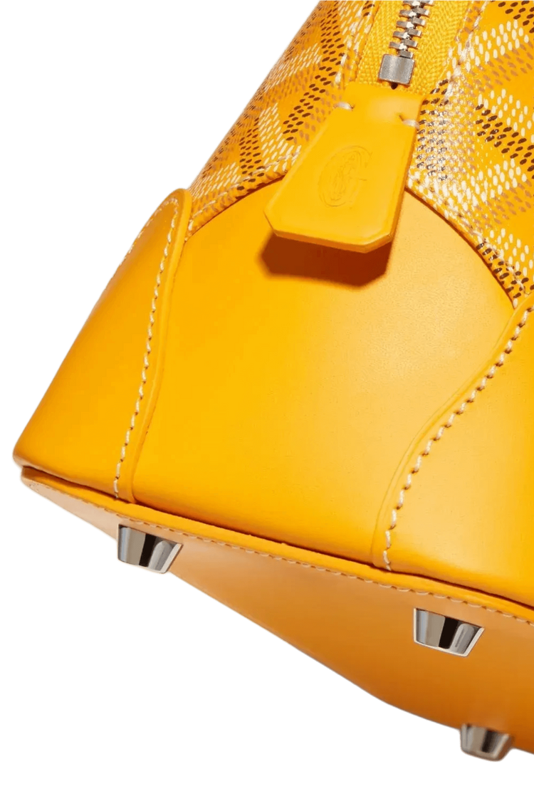 Goyardキャンバス地にシェブローチカーフスキン。ライニング:明るいイエローのコットン。ジュエリー:パラジウム