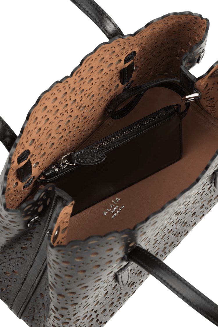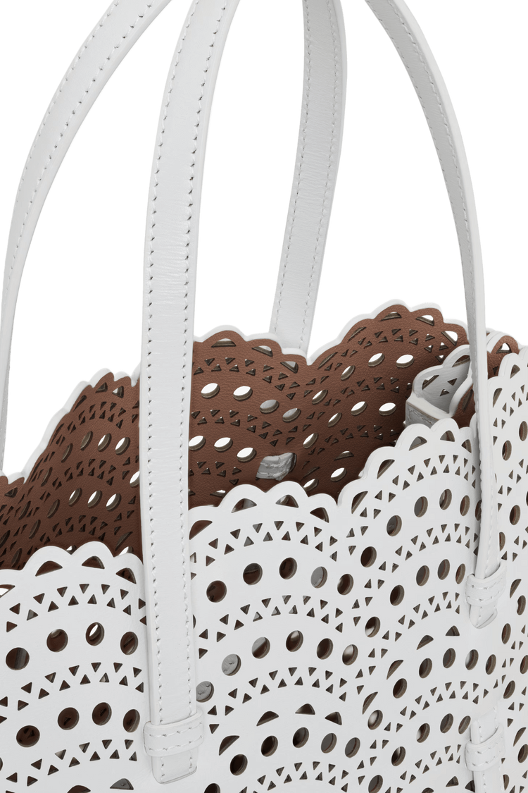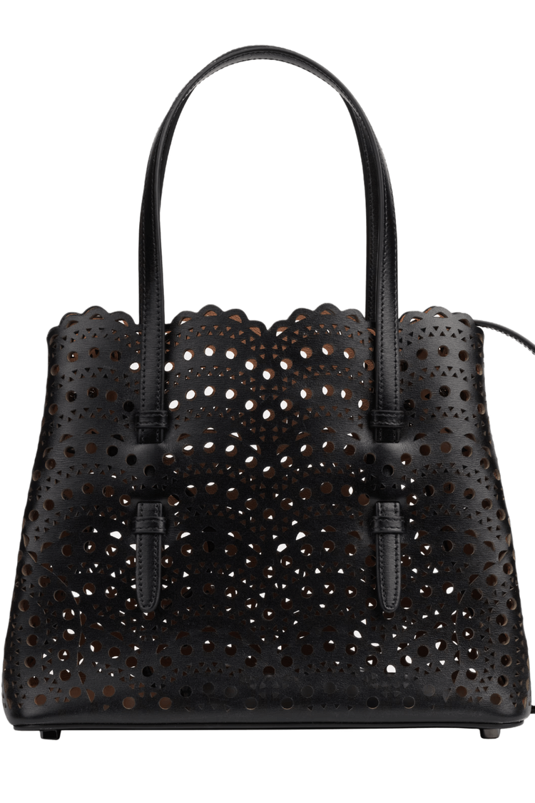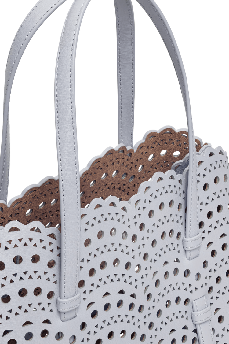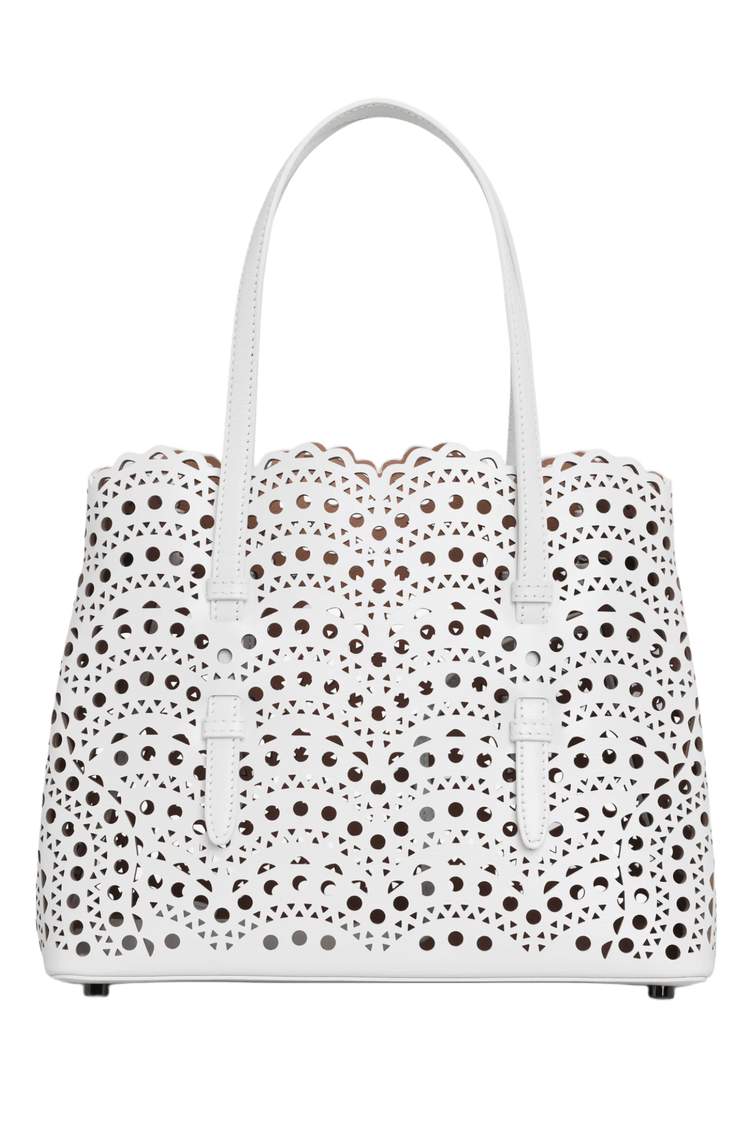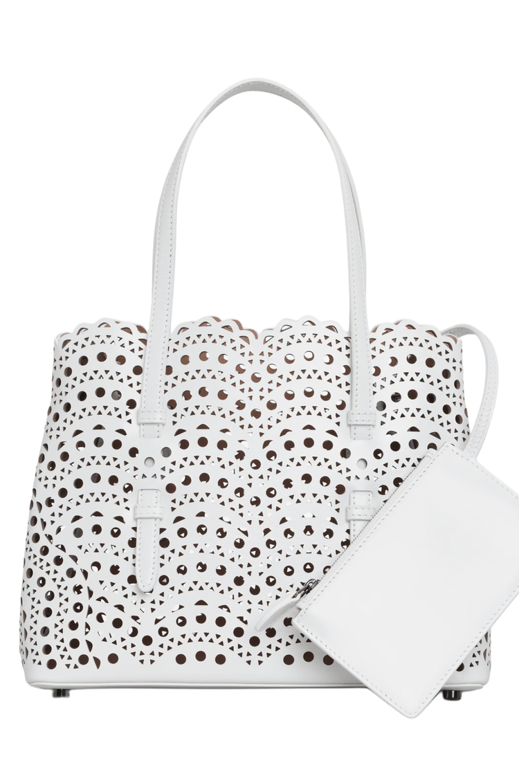The Mina 25 in Vienne Wave calfskin evokes Alaïa’s architectural mastery through its rhythmic laser-cut pattern—an elegant interplay of light, shadow, and form. Designed for the discerning minimalist, it moves with you from gallery mornings to candlelit evenings, a sculptural statement of quiet power and poetic utility.