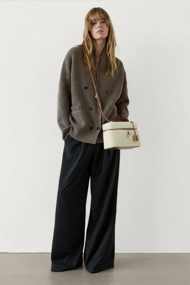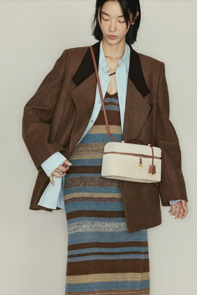 Handle this product carefully to maintain its shape - avoid overfilling it. Protect it from prolonged exposure to cosmetics, perfume, chemicals, or materials that may cause stains. Store away from direct sunlight, heat, and moisture. If the leather gets dirty or wet, gently clean the area with a soft, light-colored cotton cloth. Do not use soap or harsh solvents. For delicate details, seek professional cleaning. When storing, fold carefully in its original packaging with Loro Piana cedar balls or moth repellent, and keep in a dry, cool place.
