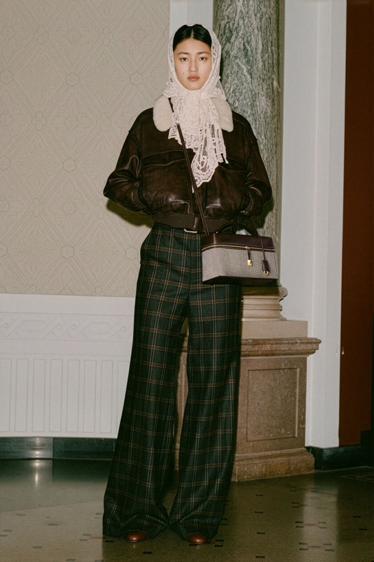 Handle this product carefully to maintain its shape - avoid overfilling it. Protect it from prolonged exposure to cosmetics, perfume, chemicals, or materials that may cause stains. Store away from direct sunlight, heat, and moisture. If the leather gets dirty or wet, gently clean the area with a soft, light-colored cotton cloth. Do not use soap or harsh solvents. For delicate details, seek professional cleaning. When storing, fold carefully in its original packaging with Loro Piana cedar balls or moth repellent, and keep in a dry, cool place.
