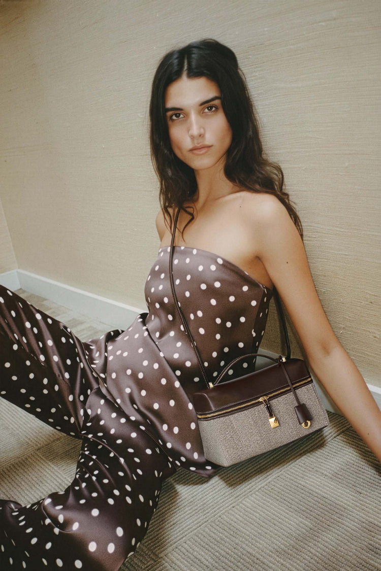 The Loro Piana Women’s Extra Bag L27 combines avant-garde sculptural design with timeless versatility, crafted from supple leather adorned with artisanal three-dimensional charms for contemporary elegance. Its convertible strap and featherlight construction offer effortless day-to-evening adaptability, embodying Loro Piana’s legacy of quiet luxury and functional sophistication.