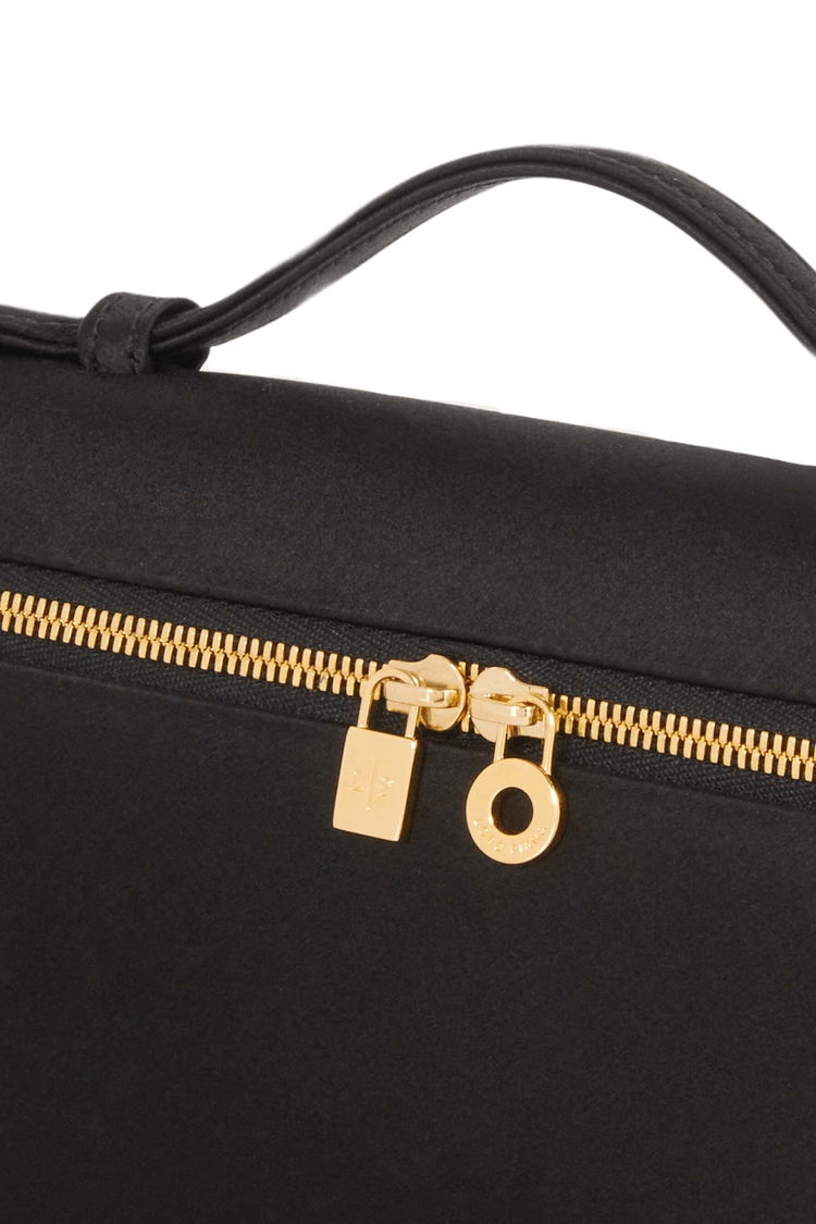 The Loro Piana Women’s Extra Pocket L19 combines minimalist sophistication with artisanal craftsmanship, crafted from lustrous satin and supple lambskin leather featuring a removable crossbody strap for versatile styling. Its compact, lightweight design balances understated glamour and everyday functionality, offering timeless elegance for both casual and polished ensembles.
