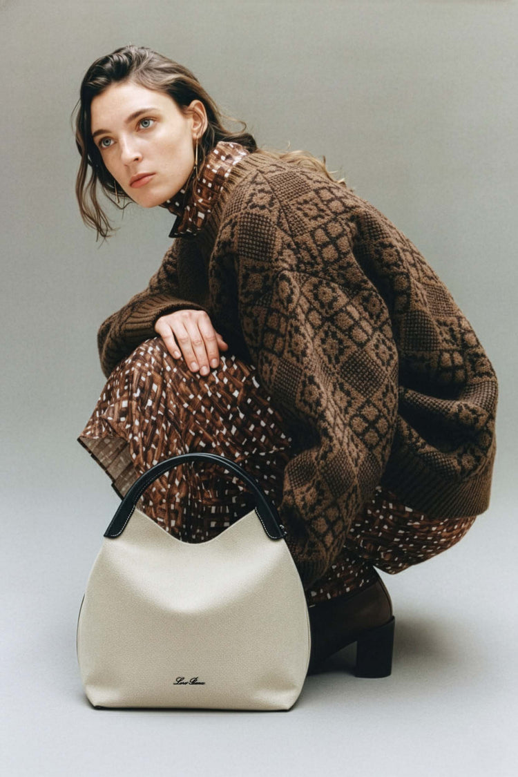 Handle this product carefully to maintain its shape - avoid overfilling it. Protect it from prolonged exposure to cosmetics, perfume, chemicals, or materials that may cause stains. Store away from direct sunlight, heat, and moisture. If the leather gets dirty or wet, gently clean the area with a soft, light-colored cotton cloth. Do not use soap or harsh solvents. For delicate details, seek professional cleaning. When storing, fold carefully in its original packaging with Loro Piana cedar balls or moth repellent, and keep in a dry, cool place.