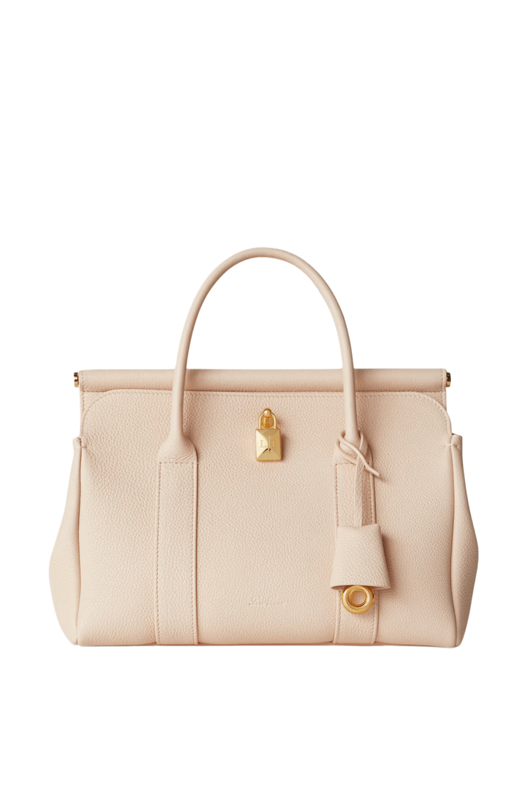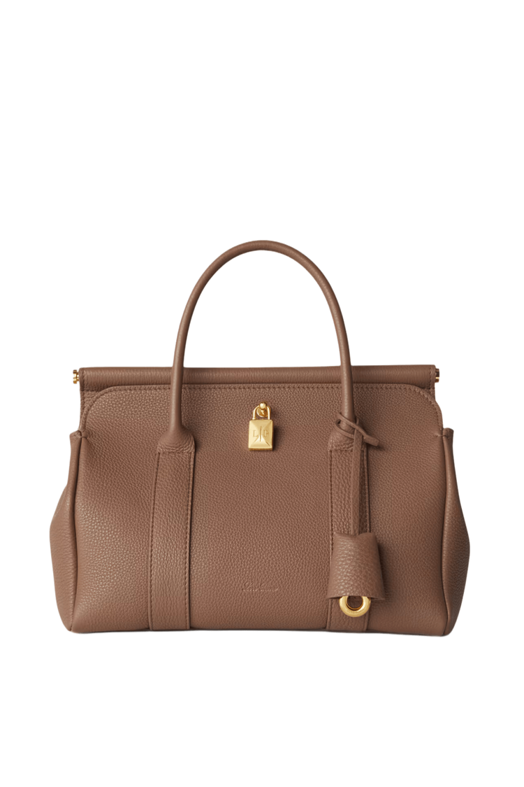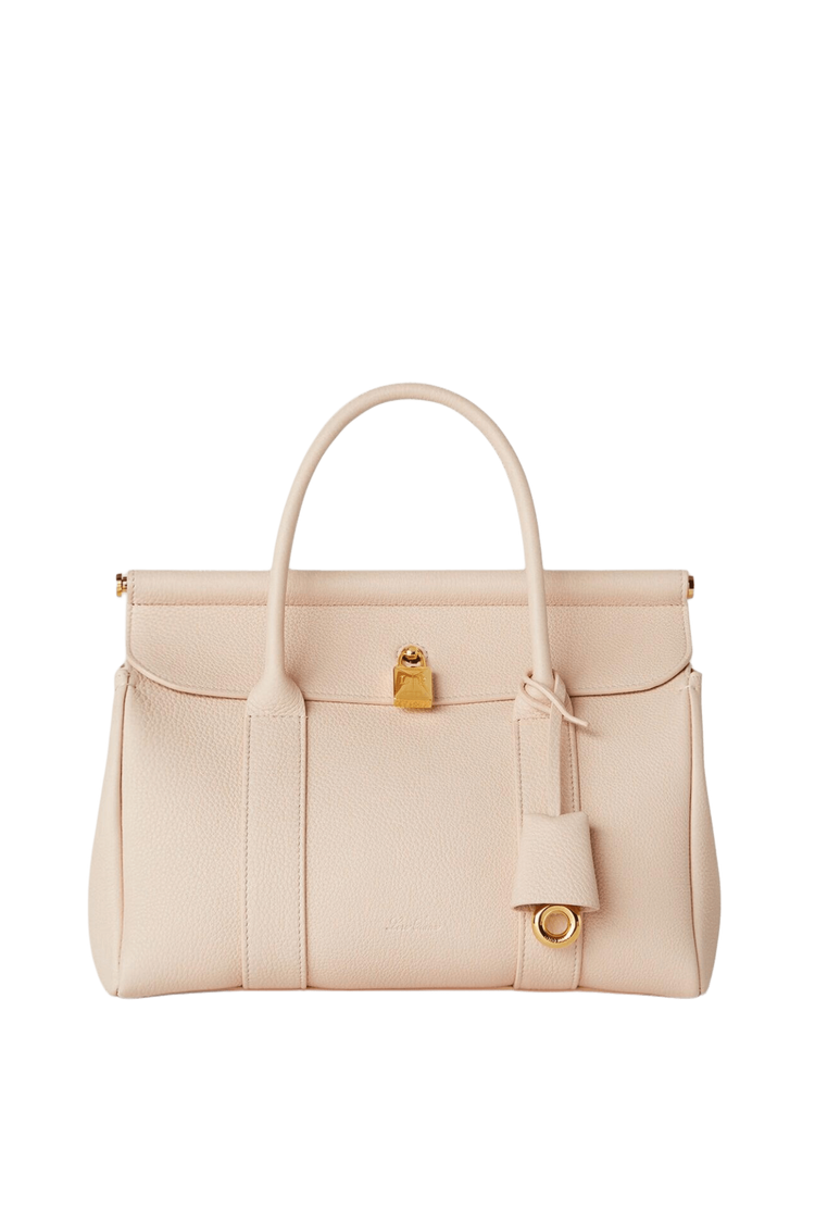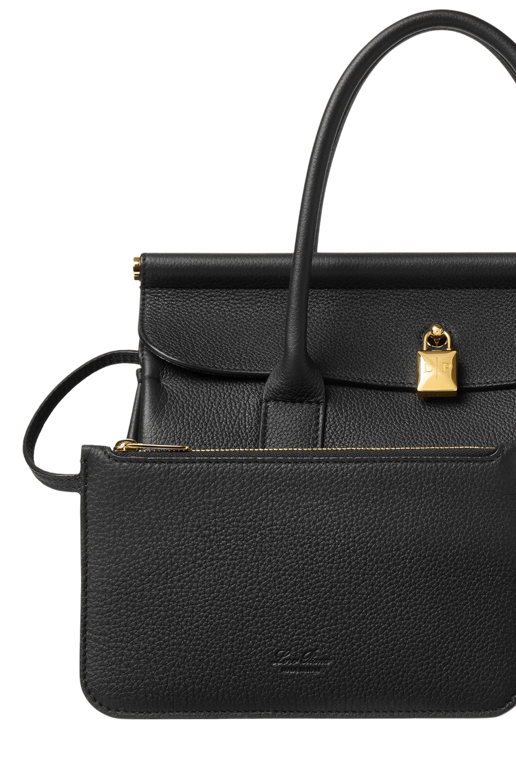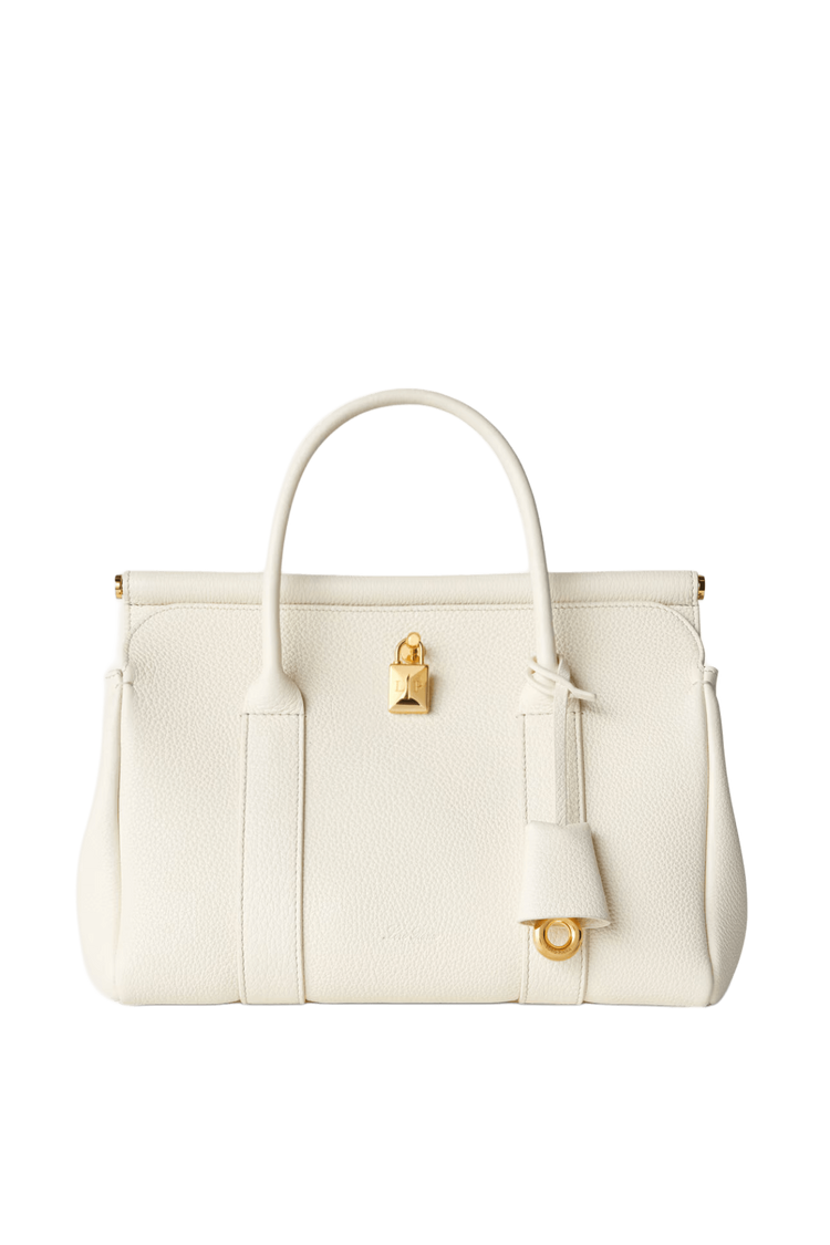 The Loro Piana Women’s Loom Bag L25 celebrates textile heritage with a sculpted metal bar evoking a weaver’s loom, crafted in featherlight fine-grain calfskin and a detachable padlock for versatile sophistication. Its supple silhouette transitions seamlessly from polished elegance to relaxed ease, embodying timeless craftsmanship and understated luxury as a modern heirloom.