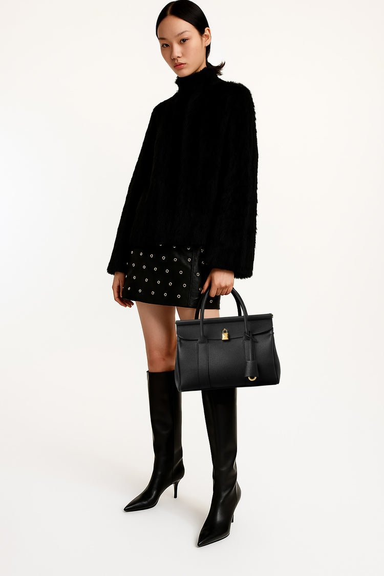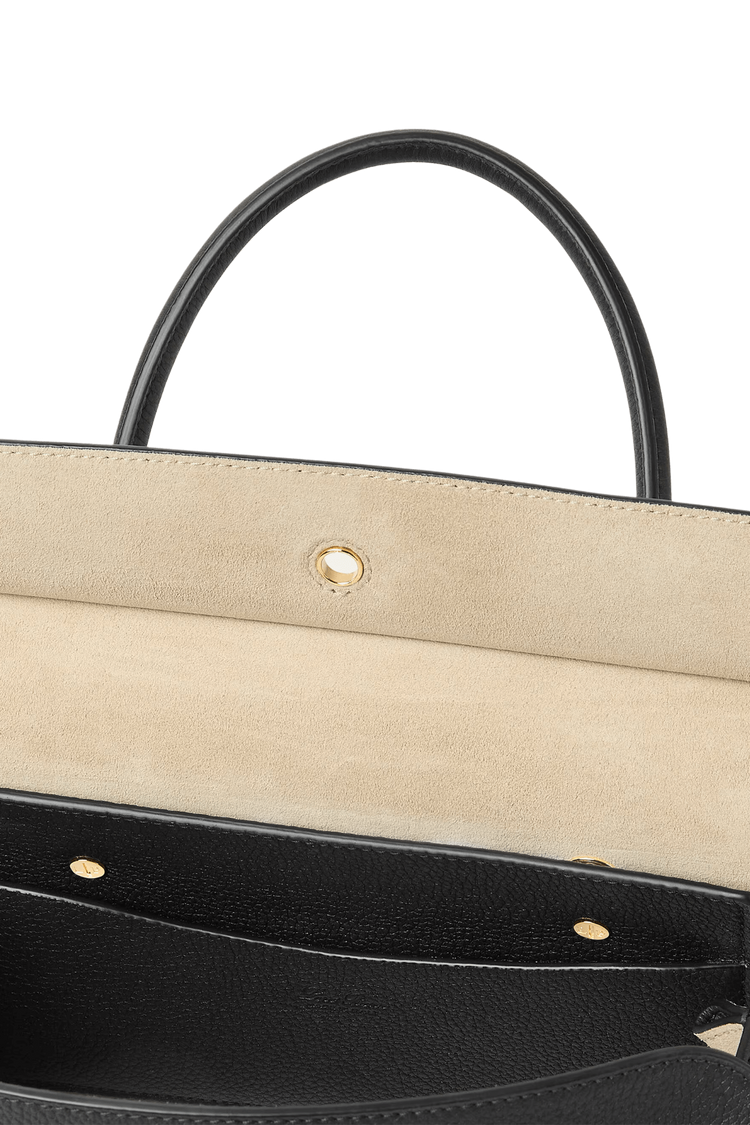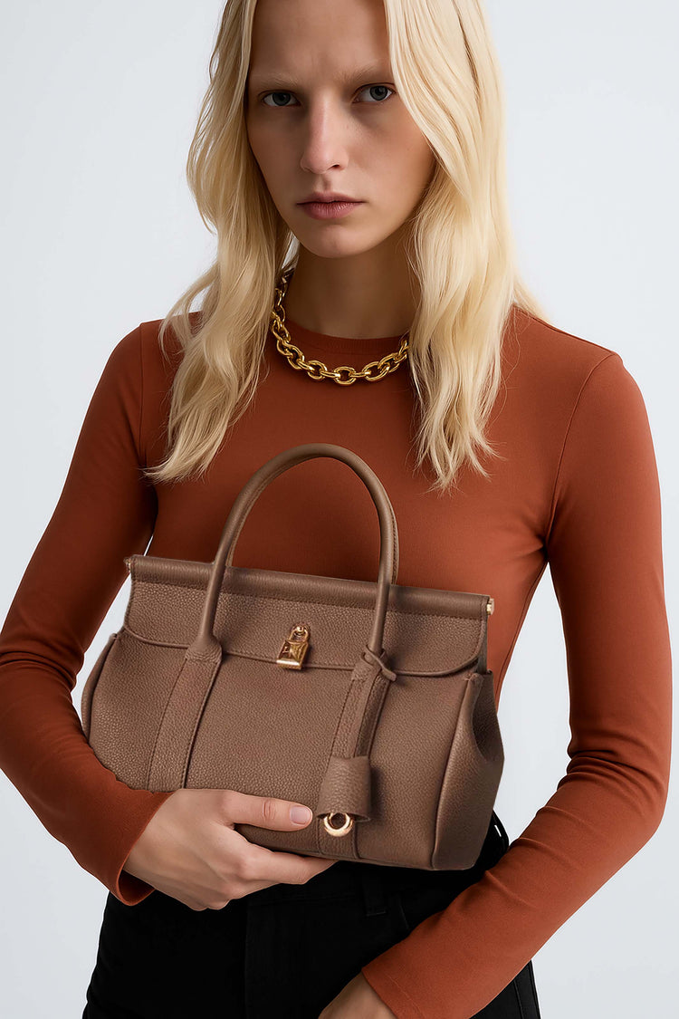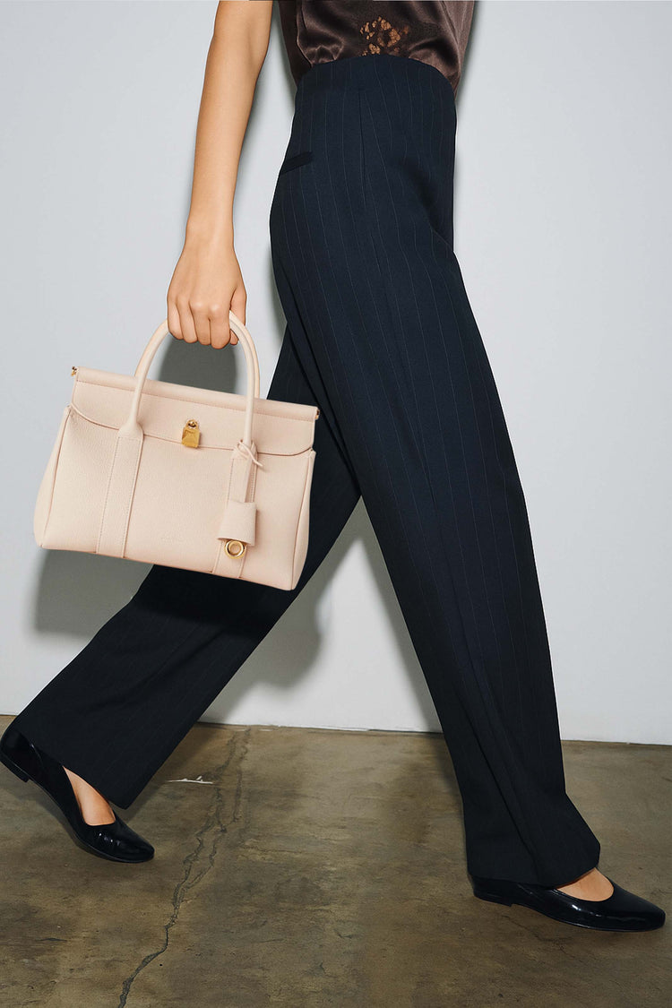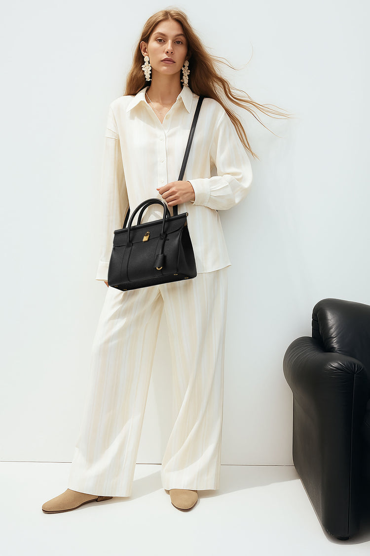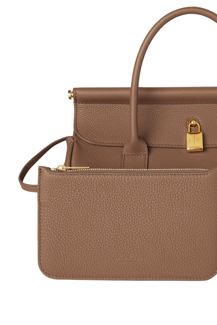 The Loro Piana Women’s Loom Bag L25 celebrates textile heritage with a sculpted metal bar evoking a weaver’s loom, crafted in featherlight fine-grain calfskin and a detachable padlock for versatile sophistication. Its supple silhouette transitions seamlessly from polished elegance to relaxed ease, embodying timeless craftsmanship and understated luxury as a modern heirloom.