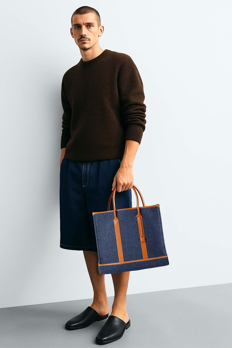 Loro Piana Men’s Small Beam Tote merges artisanal heritage with modern design, crafted from luxe cotton denim and calfskin trim inspired by textile craftsmanship’s iconic loom beam. Its expandable base, supple leather handles, and understated hardware deliver timeless versatility, blending rugged durability and refined elegance for the discerning gentleman.