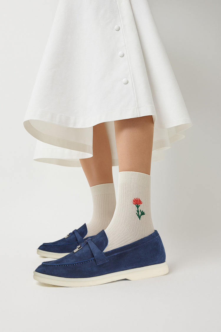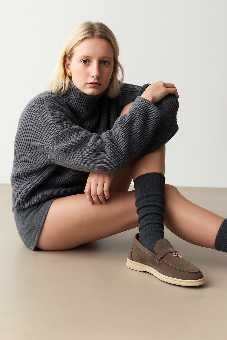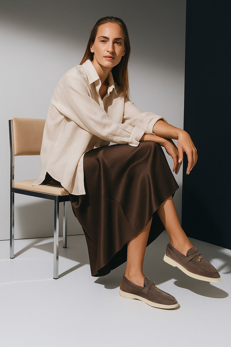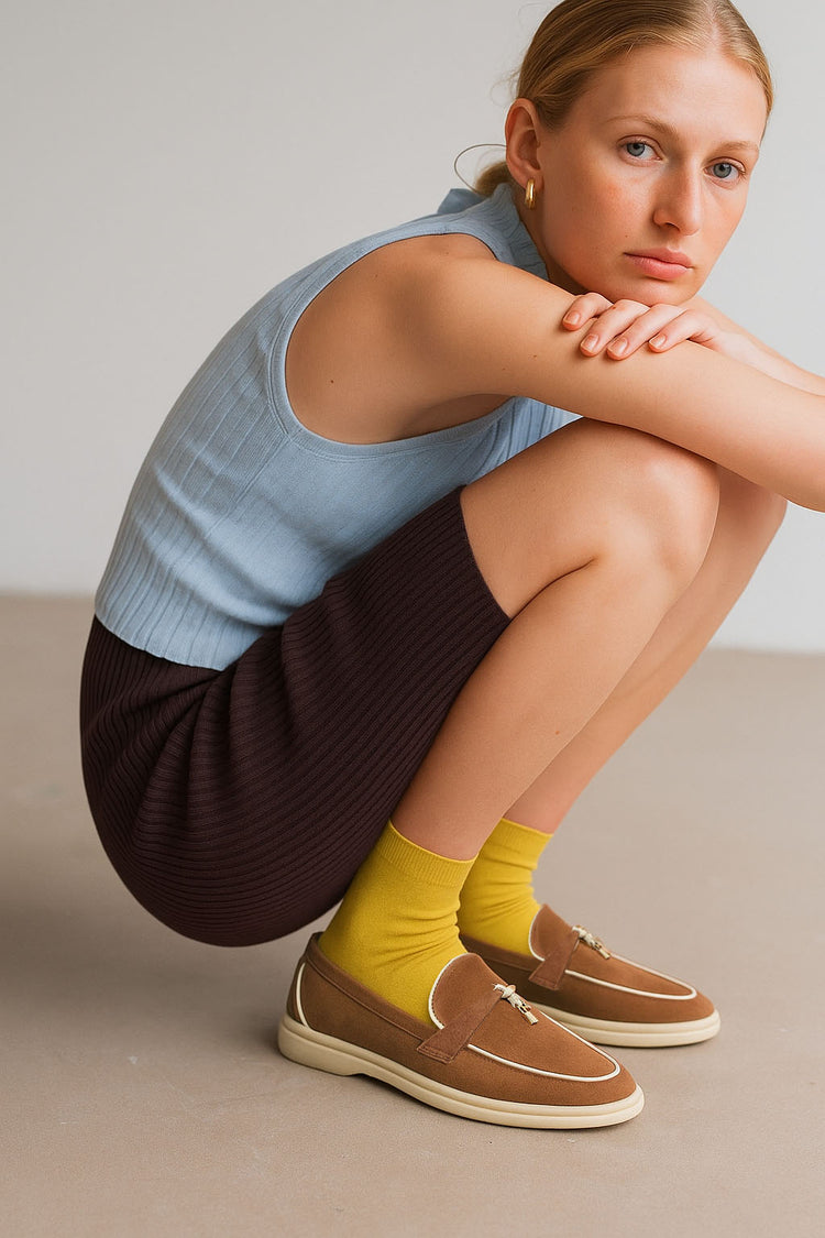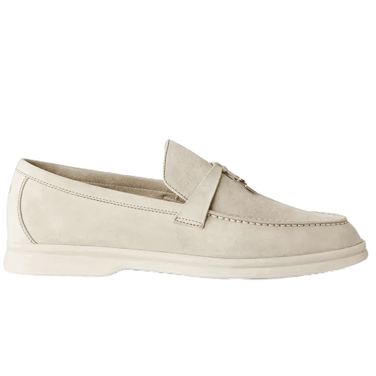 Loro Piana Women's Summer Charms Walk Loafers combine soft suede with durable rubber soles and elegant My Charms details, perfect for summer adventures by sea or city.