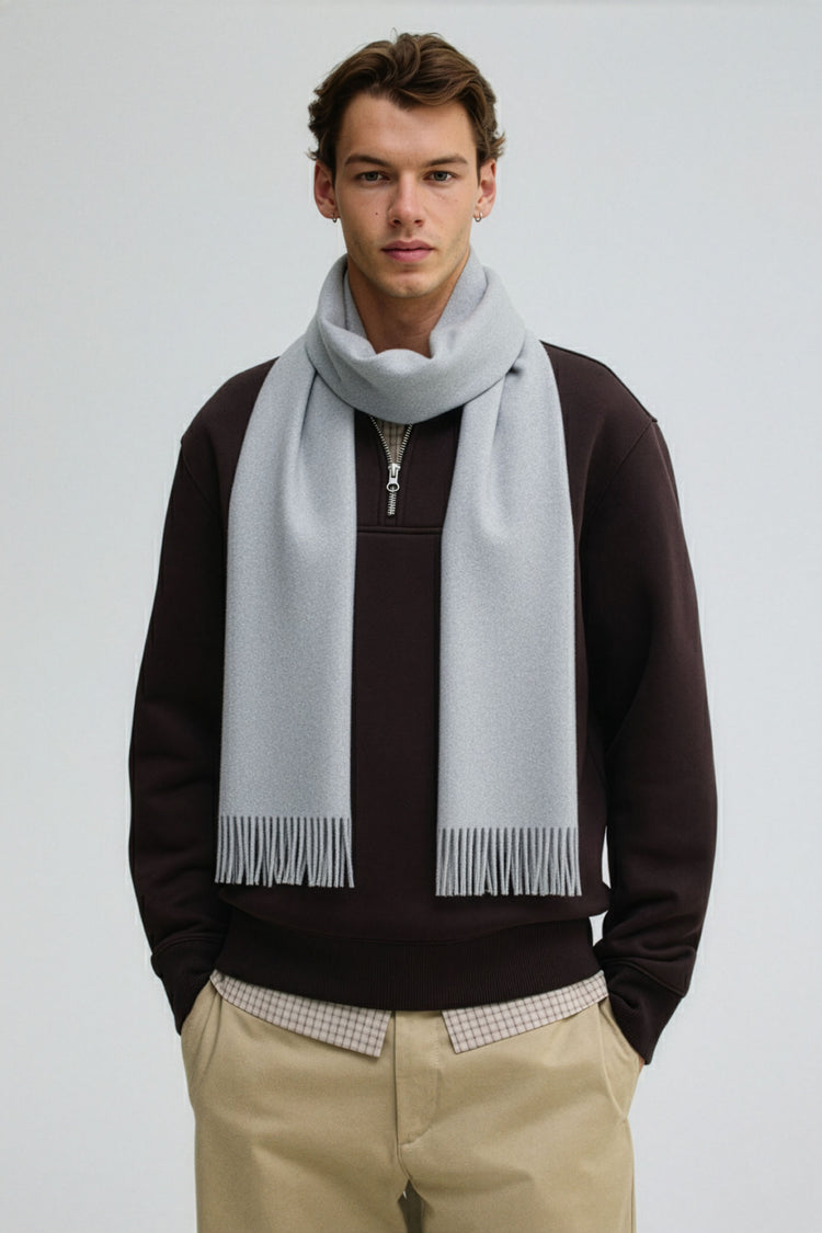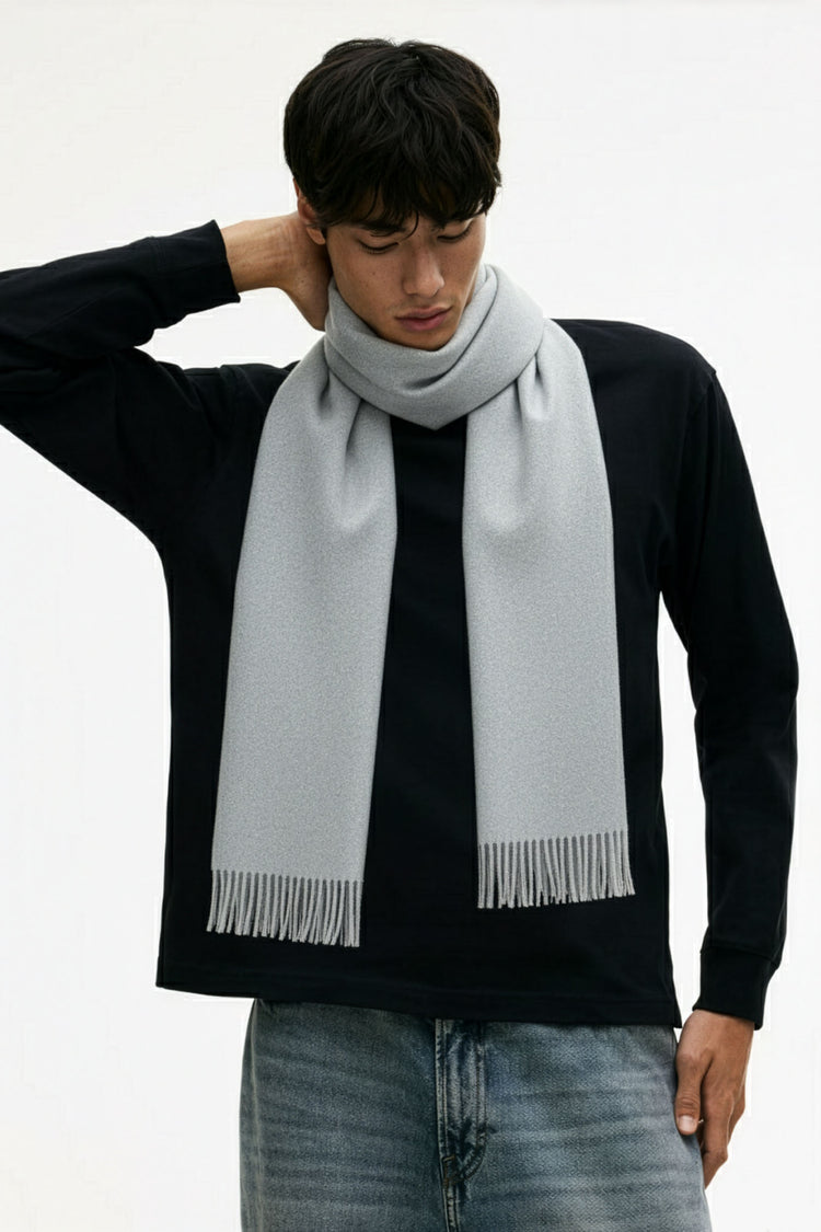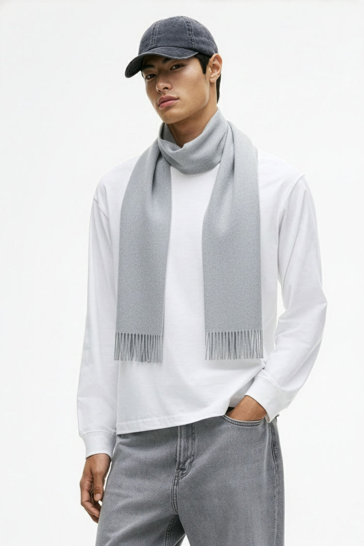 A sustainable, gender-neutral accessory in regenerated cashmere with a “frisson” finish, combining luxury, softness, and timeless style scarf.