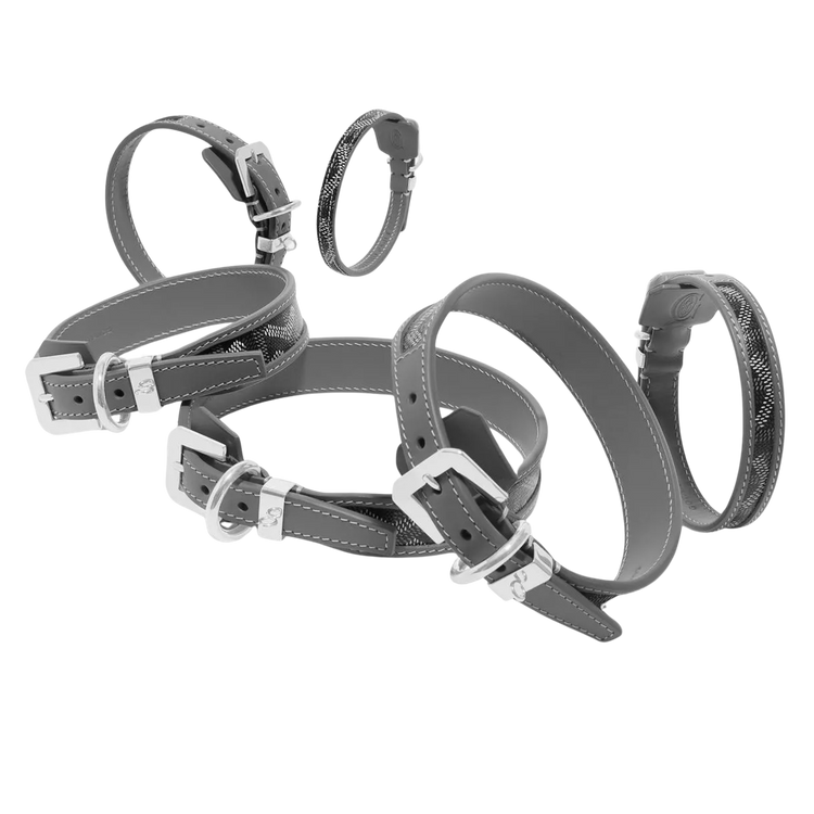 这 <tc>Goyard</tc> Edmond Collar 完美融合了奢华与实用性,是您毛茸茸的朋友的理想之选。采用优质材料制成,并饰有标志性的 <tc>Goyard</tc> 这款项圈饰有字母图案,可为任何狗狗的衣橱增添一抹精致气息。可调节扣环确保佩戴牢固,坚固的D形环则方便系上牵引绳。这款必备配饰专为日常佩戴和特殊出游设计,可提升您爱犬的时尚品味。