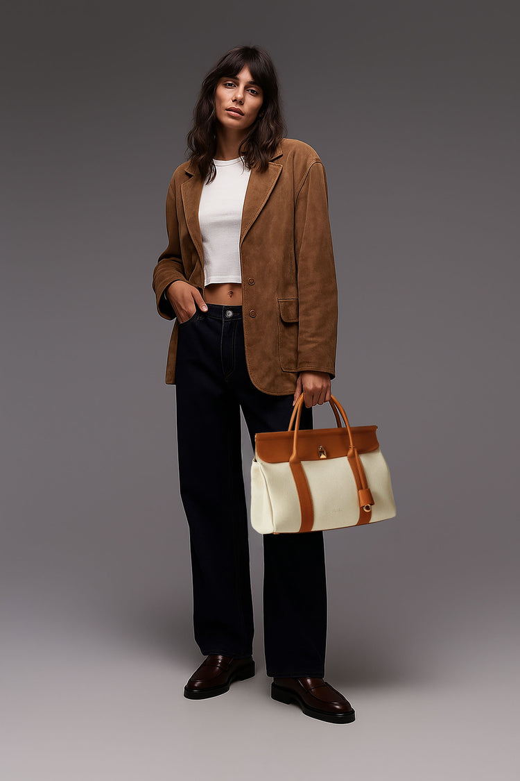 这 <tc>Loro Piana</tc> L32 女士 Loom 包以奢华纹理小牛皮打造,以雕刻的金属条致敬纺织工艺传统,令人联想起织布机,轻盈精致。包身配有可拆卸挂锁,设计灵活多变——可闭合或展开——在精致优雅与轻松随意之间无缝切换,彰显根植于手工传统的永恒优雅。