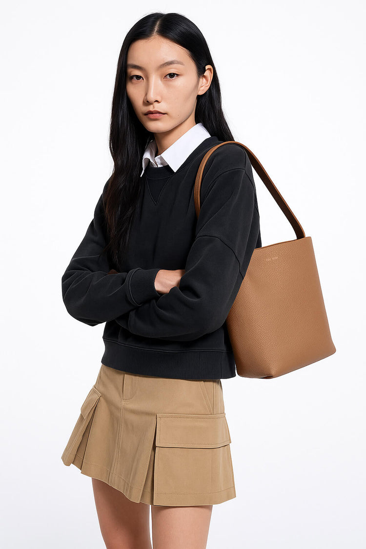 对于追求低调精致的收藏家来说,这款 N/S Park 皮革小手提包是 低调奢华,匠心工艺,采用柔软优质皮革精制而成,彰显品牌对极简优雅的执着追求。简洁利落的无标识设计,小巧却百搭,是 低调的专属象征,吸引那些注重功能性和艺术性而非炫耀的人士。这款托特包的设计旨在让白天和夜晚的装扮无缝衔接, 现代传家宝,融合实用性与 <tc>The Row</tc>持久工艺的传承。