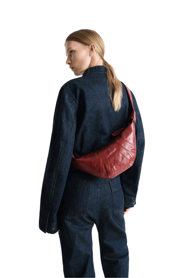 這 <tc>Lemaire</tc> 這款中性款小號牛角包採用鞣製皮革精製而成,優雅地隨著歲月流逝,帶來靜謐的奢華,與您一同演繹。其時尚的半圓形設計和精湛的手工工藝,使其成為您收藏中一款百搭、經典的單品。