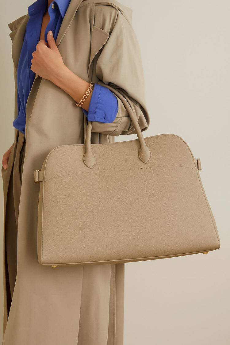 對於低調優雅的策展人來說, <tc>The Row</tc> 柔軟的 Margaux 17 皮革手袋體現 雋永的工藝與低調的奢華,採用粒面小牛皮精製而成,體現了品牌對極簡主義精緻的執著。寬敞而精緻,簡潔的無標誌設計,成為 低調的專屬象徵,吸引那些注重精緻而非炫耀的人士。這款包款專為日間和夜間的無縫過渡而設計, 現代傳家寶,融合功能與 <tc>The Row</tc>的手工技藝傳承。